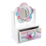 Izvlečni predalček z motivom samoroga ohrani prstane, uhane in druge malenkosti pregledno in vedno pri roki.
