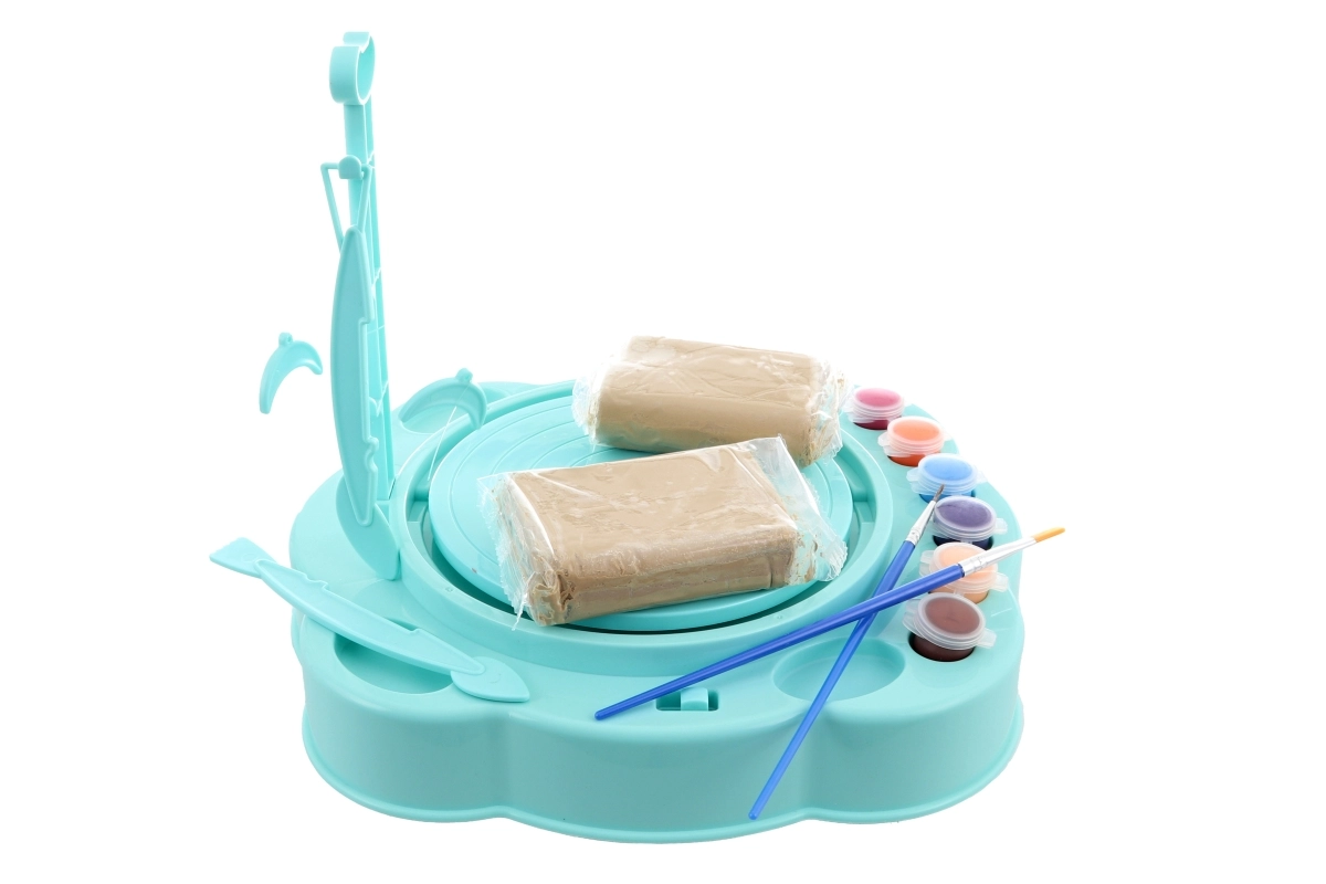 Odkrijte ustvarjalno veselje s turkiznim lončarskim kolovratom za otroke – idealna izbira za prve keramične poskuse in razvoj domišljije. Komplet vsebuje vse, kar potrebujete za izdelavo in okraševanje lastnih izdelkov. Enostavno upravljanje, zabavna ustvarjalnost in popolna oprema za takojšnje ustvarjanje.