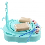 Ta otroški lončarski kolovrat prinaša odlično zabavo ter razvija fino motoriko in ustvarjalnost. Zahvaljujoč napajanju na baterije ga lahko preprosto uporabljate kjerkoli – dovolj je, da vstavite glino, zavrtite kolovrat in začnete ustvarjati lastne skledice, vaze ali dekoracije. Turkizna izvedba bo razveselila male umetnike in jih motivirala k ustvarjanju.