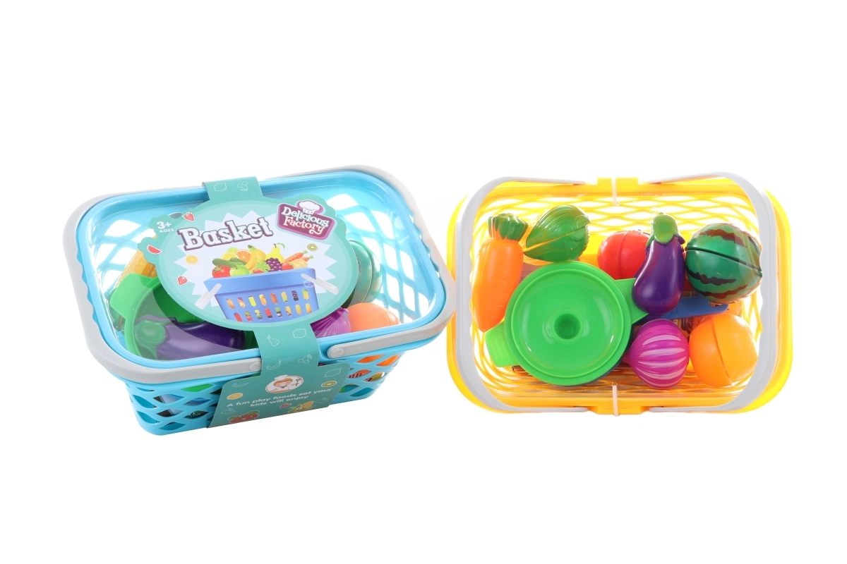 Odkrijte popoln set za malega kuharja! Plastično košaro z ročaji lahko uporabite tudi kot nakupovalno košaro, znotraj pa najdete vse potrebno za igro kuhanja – od sadja in zelenjave, do škatlice s kavo in čajem, pa vse do deske in varnega nožka. Živila so povezana z ježki, zato jih lahko otroci zlahka “režejo” in ponovno sestavljajo.