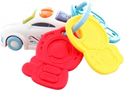 Zabavni otroški avtomobilski ključi razveselijo najmlajše voznike z realističnimi učinki. Po vstavitvi baterij predvajajo zvok zagona, trobento, zaklepanje in veselo melodijo. Lahka in trpežna plastična igrača za otroke od 12 mesecev razvija sluh, fino motoriko in domišljijo.