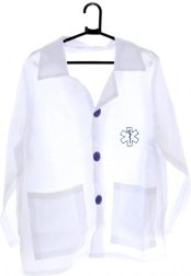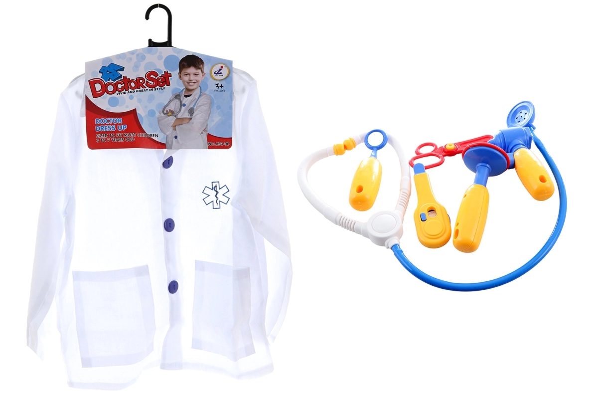 Otroški kostum zdravnica prinaša vse, kar je potrebno za zabavno igro ordinacije. Plašč z dolgimi rokavi je lahek in udoben, z praktičnimi žepi za shranjevanje pripomočkov. Komplet plastičnih orodij (npr. stetoskop, termometer in injekcija) spodbuja razvoj domišljije, empatije in fine motorike.