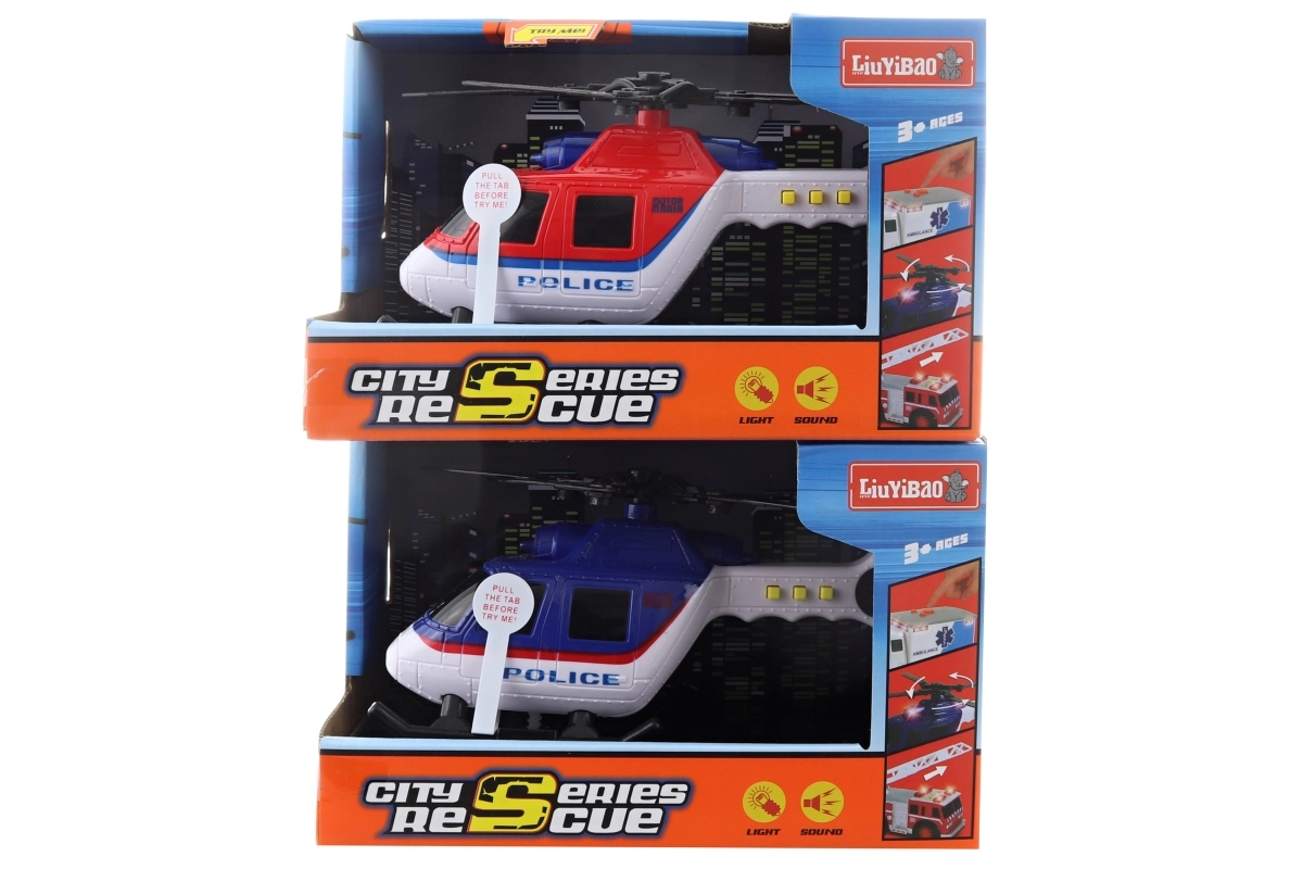 Ta policijski helikopter otrokom prinaša napeto igro, polno akcije. Po vstavitvi baterij se prižge in zažene avtentične zvočne učinke – vzlet, vrtenje rotorja in značilno policijsko sireno. Odlična izbira za male oboževalce policijskih posredovanj in reševalnih misij.