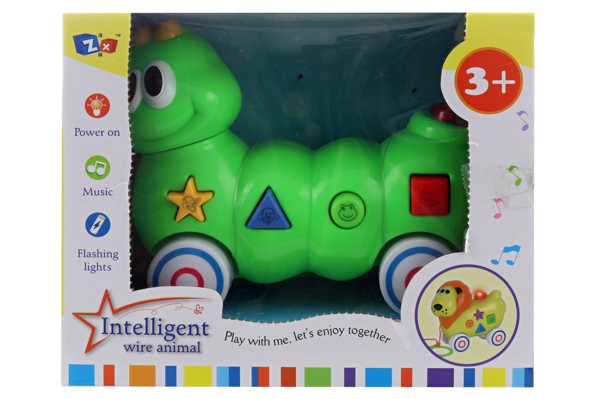Ta barvita vlečna gosenica je idealna igrača za prvo odkrivanje sveta zvokov in gibanja. Zahvaljujoč gumbom s slikami živali po vstavitvi baterij predvaja privlačne zvoke, ki otroke zabavajo in hkrati učijo prepoznavati posamezne živalske glasove.