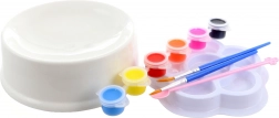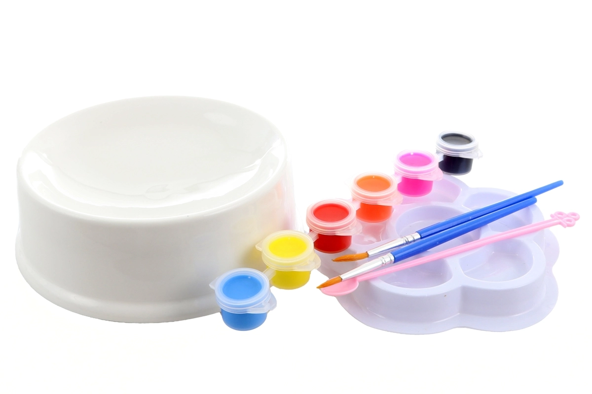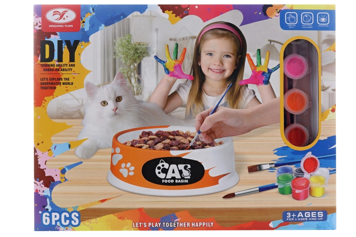 Del kompleta je 6 barv, 2 čopiča in slikarska paleta, zato lahko otroci kombinirajo barve, mešajo odtenke in ustvarjajo izvirne motive. Končana skledica je ne le lepa, temveč tudi funkcionalna kot skledica za hrano ali vodo za mačko.
