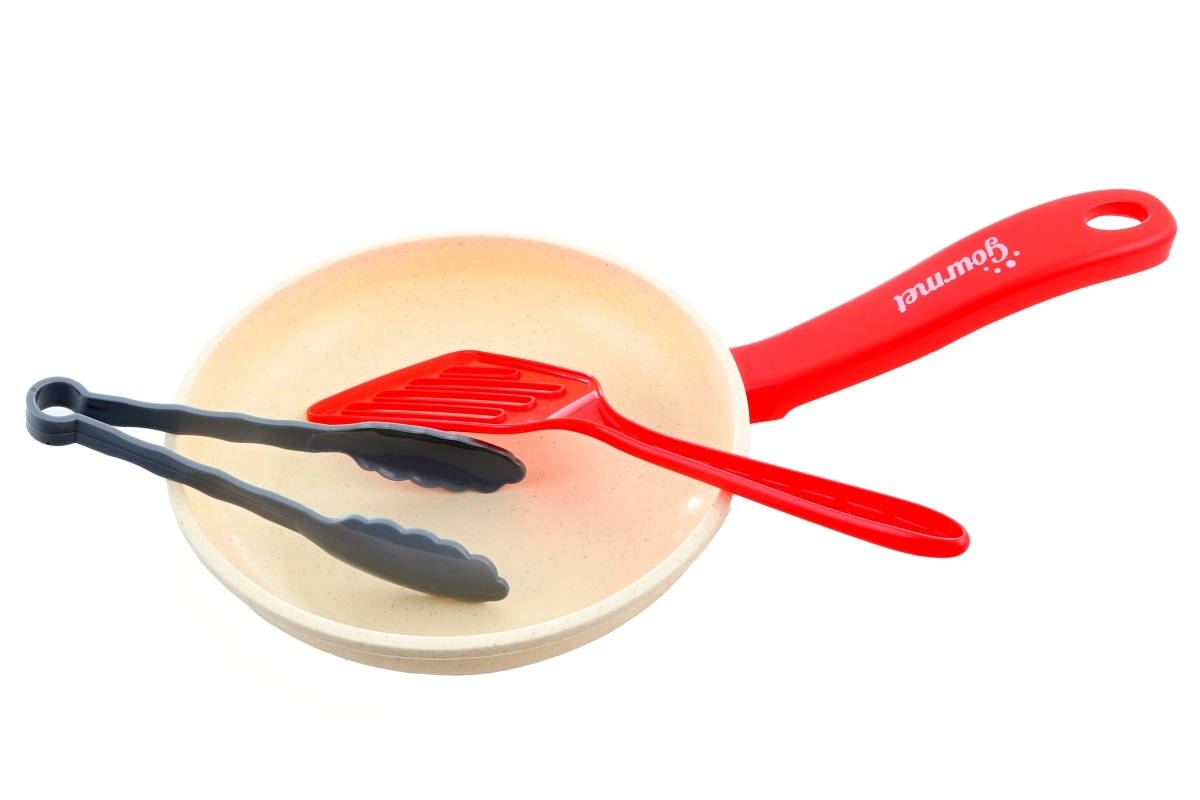 Ponvica z rdečim ročajem, rešetkasta lopatka in klešče iz trpežne plastike so zasnovane tako, da jih je enostavno držati in varno uporabljati.