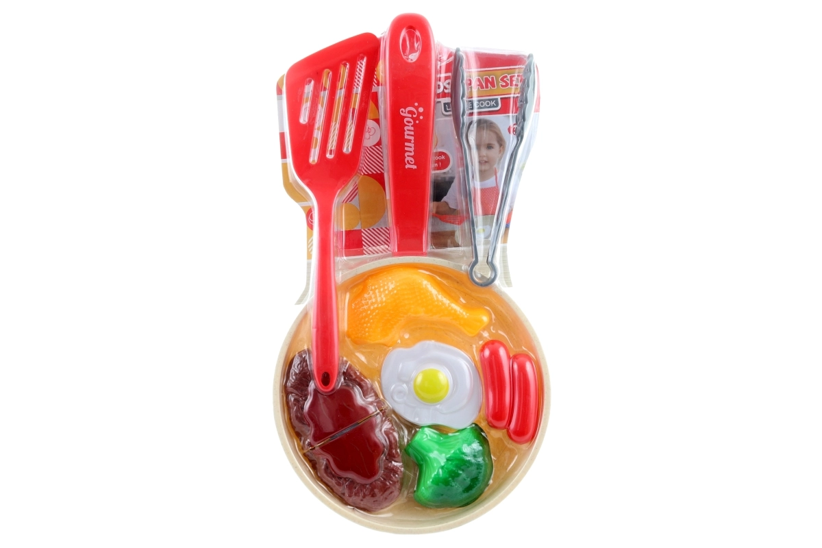 V paketu najdete vse potrebno: ponvico, lopatko, klešče in 5 kosov živil (npr. jajce, zrezek, hrenovka, riba ali zelenjava). Set je izdelan iz kakovostne plastike in je primeren za otroke od 3 let.