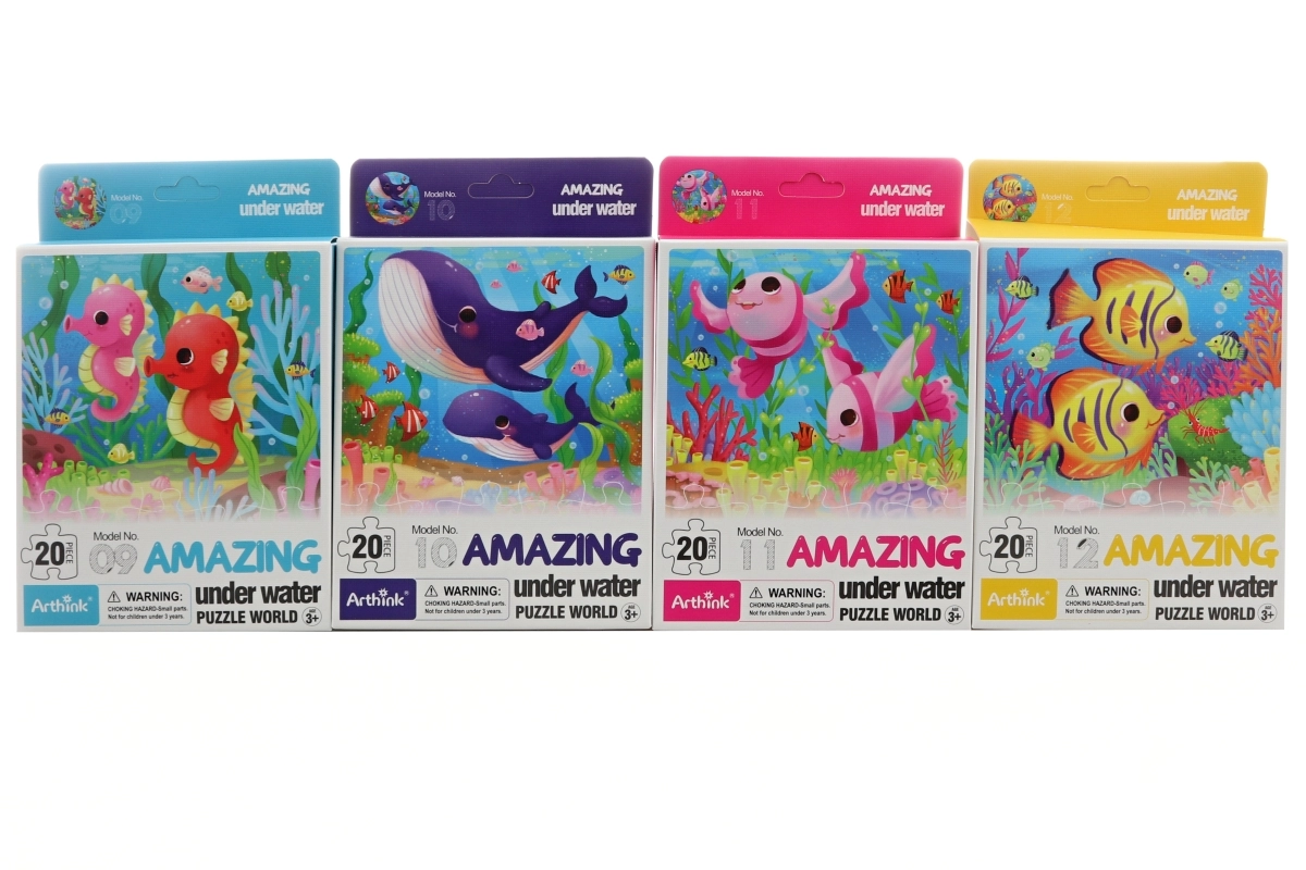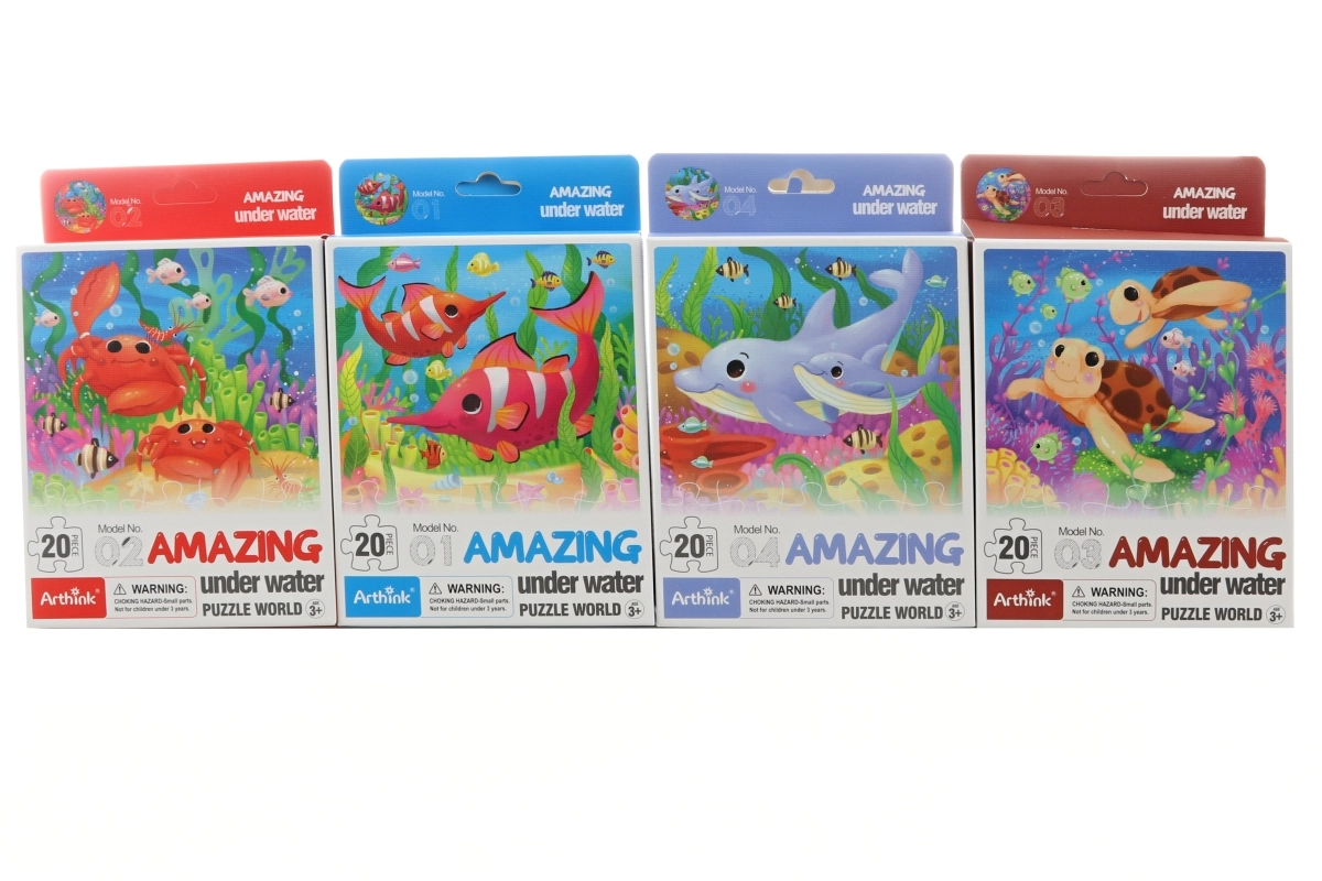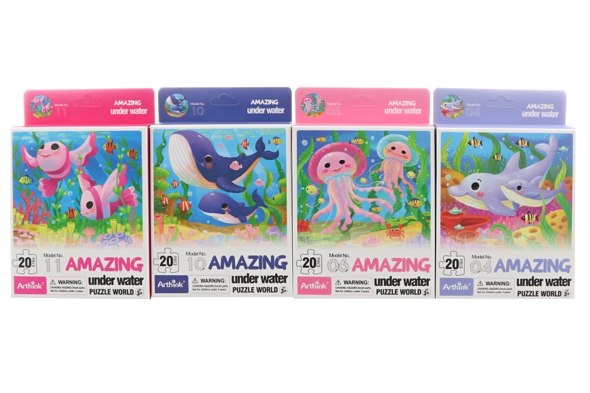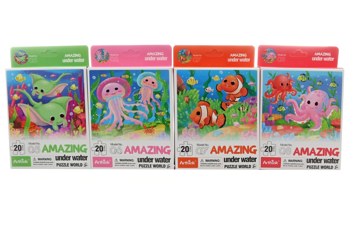 Po sestavljanju ima sestavljanka kompaktne mere 21 × 19 cm, zato jo je enostavno shranjevati in prenašati. Izmed 12 razpoložljivih motivov pošiljamo različico glede na trenutno zalogo, vsaka pa prikazuje privlačne prizore iz podmorskega življenja.