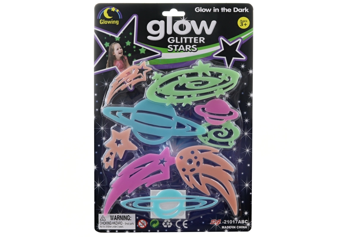 Ustvarite doma svoje nočno nebo. Fosforescentne dekoracije se čez dan ali pod svetilko polnijo in nato v temi oddajajo prijetno svetlobo. Idealne so za otroško sobo, igralnico ali kot izvirna dekoracija za zabave.