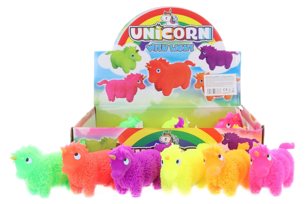 Kosmati svetleči samorog je zabavna antistresna igrača, ki se ob stisku aktivira in v notranjosti se prižge barvno utripajoča lučka. Mehki izrastki in prijetna površina vabijo k stiskanju in dotikom, kar spodbuja fino motoriko in senzorično zaznavanje otrok.