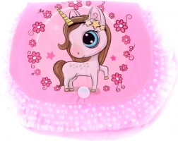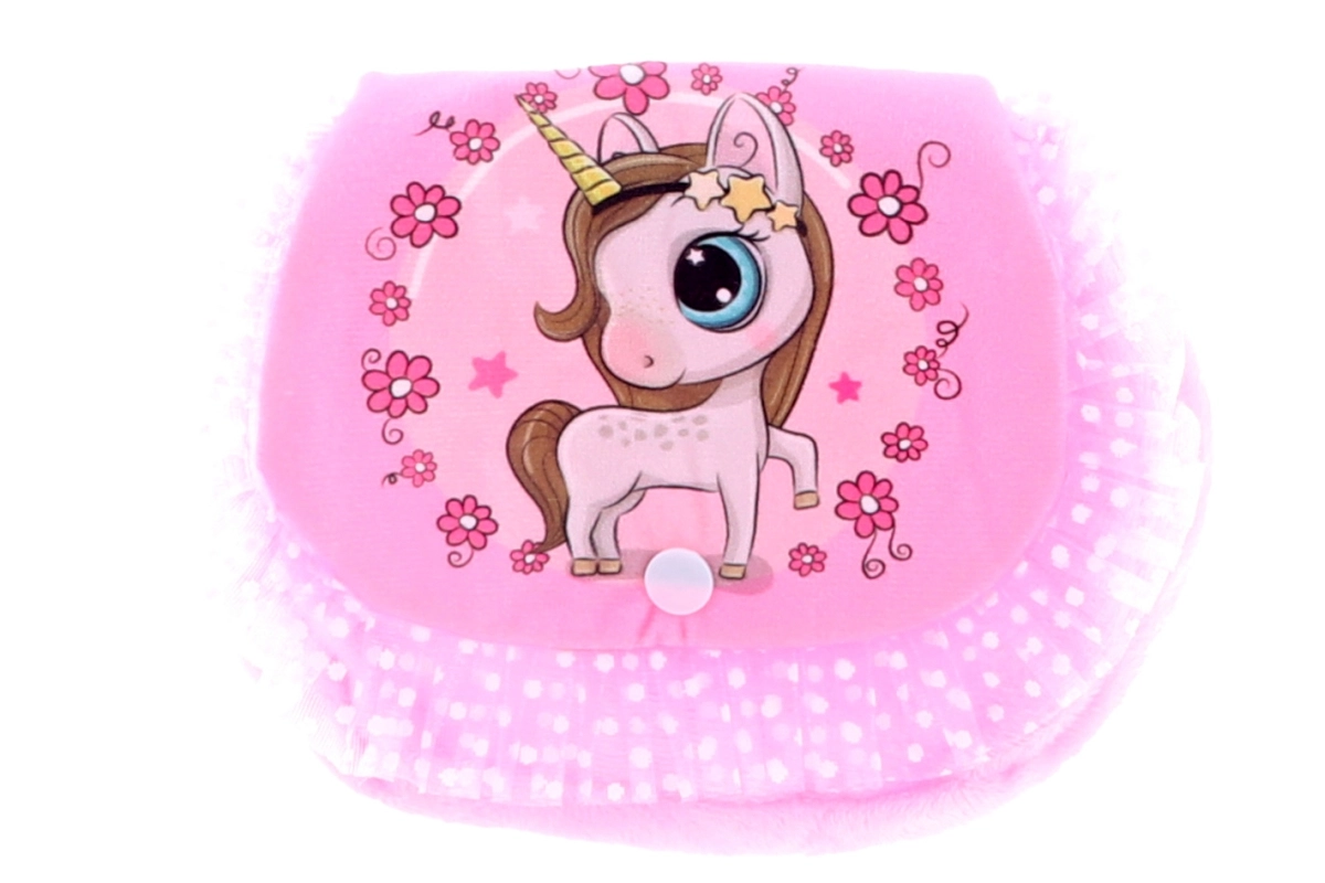 Ta modna otroška torbica z motivom samoroga očara na prvi pogled. Nežen plišast material je prijeten na dotik, kompaktna velikost pa je popolna za ključe, robčke, majhno denarnico ali drobne zaklade. Zahvaljujoč nastavljivemu traku jo je mogoče udobno nositi čez ramo.