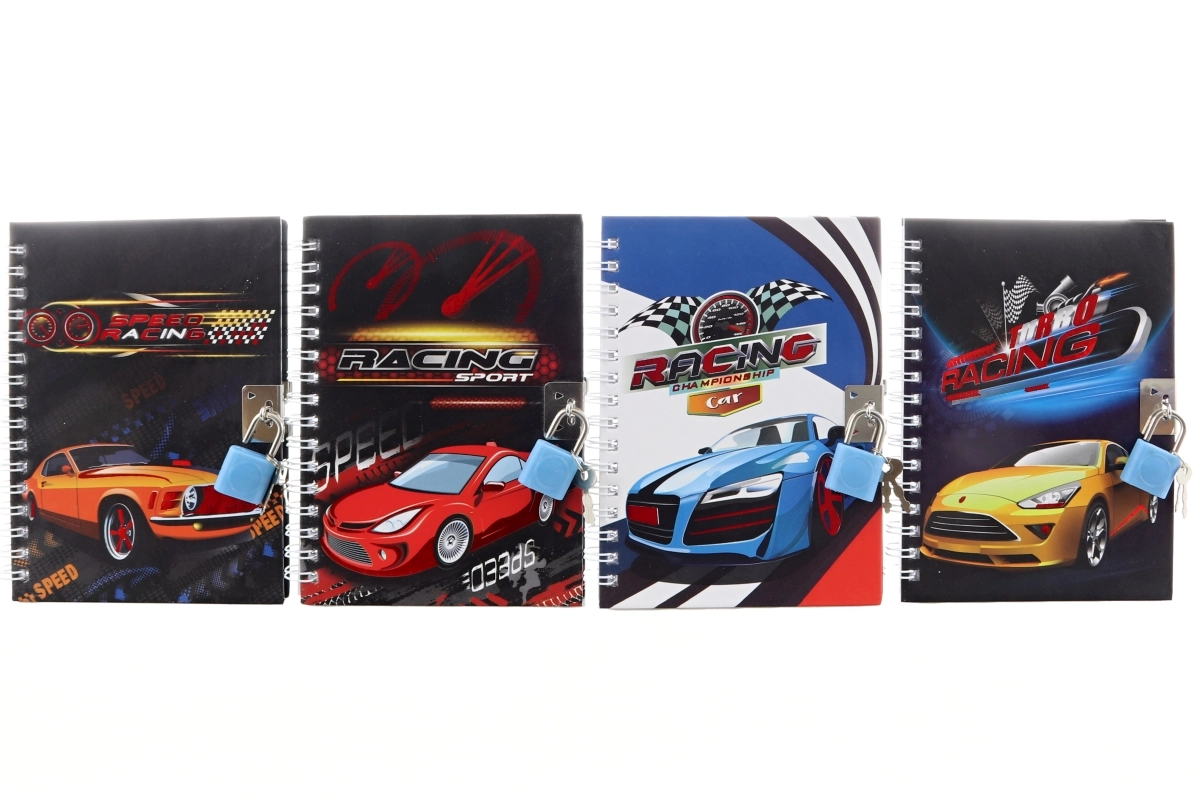 Praktična fantovska beležka z zaklepom je idealna za pisanje dnevnika, zapiskov ali skrivnih načrtov. Trde platnice z atraktivnimi avtomobilističnimi motivi in čvrsta kovinska spirala zagotavljajo udobno listanje in dolgo življenjsko dobo. Priložena je ključavnica z dvema ključema za maksimalno zasebnost.
