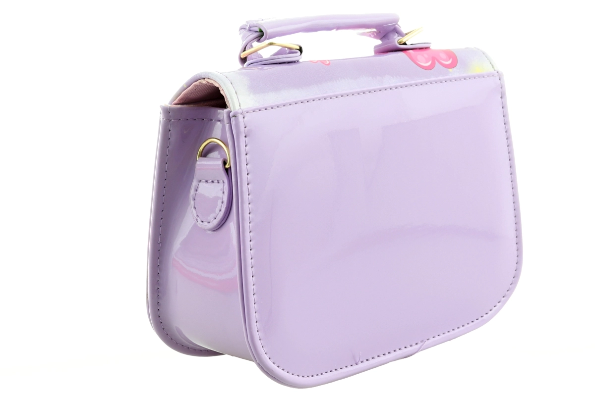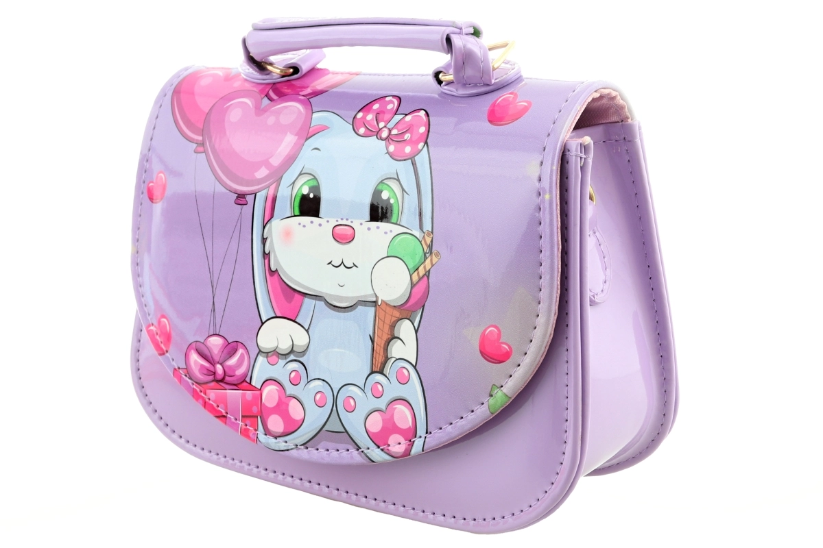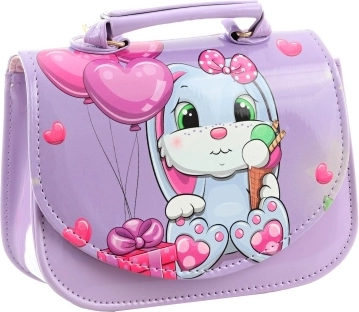 Ta majhna vijolična torbica z ljubkim kunčkom, balončki in srčki očara na prvi pogled. Sijajen material, natančni šivi in čvrsta konstrukcija zagotavljajo, da torbica lepo drži obliko in je odporna pri vsakdanji rabi. En pregleden žep in enostavno zapiranje s pritiskačem olajšata vsakodnevno uporabo.