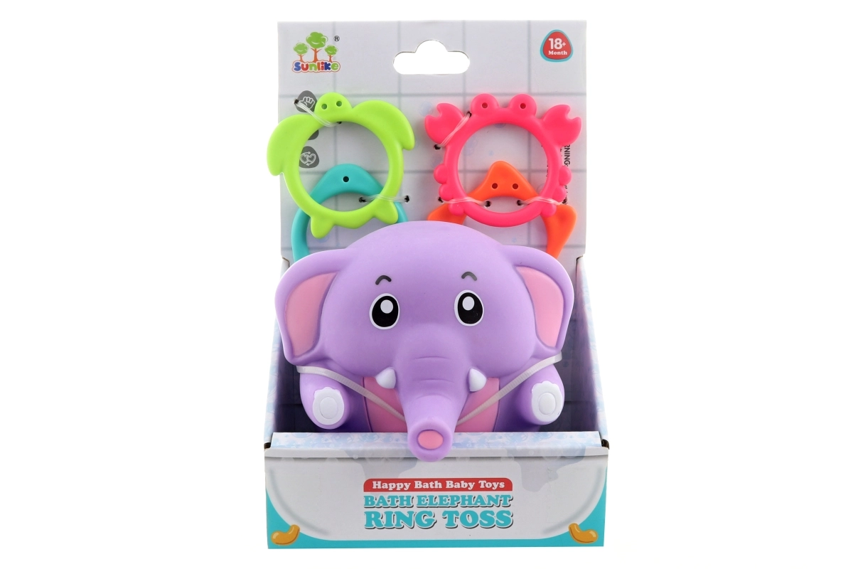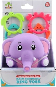 Zabavna igra za majhne otroke, pri kateri mečete obroče na rilček simpatičnega slončka. Podpira fino motoriko, koordinacijo oko–roka in potrpežljivost. Barviti obroči z motivi morskih živali spodbujajo igro ter učenje oblik in barv. Idealna igrača za otroke od 18 mesecev.