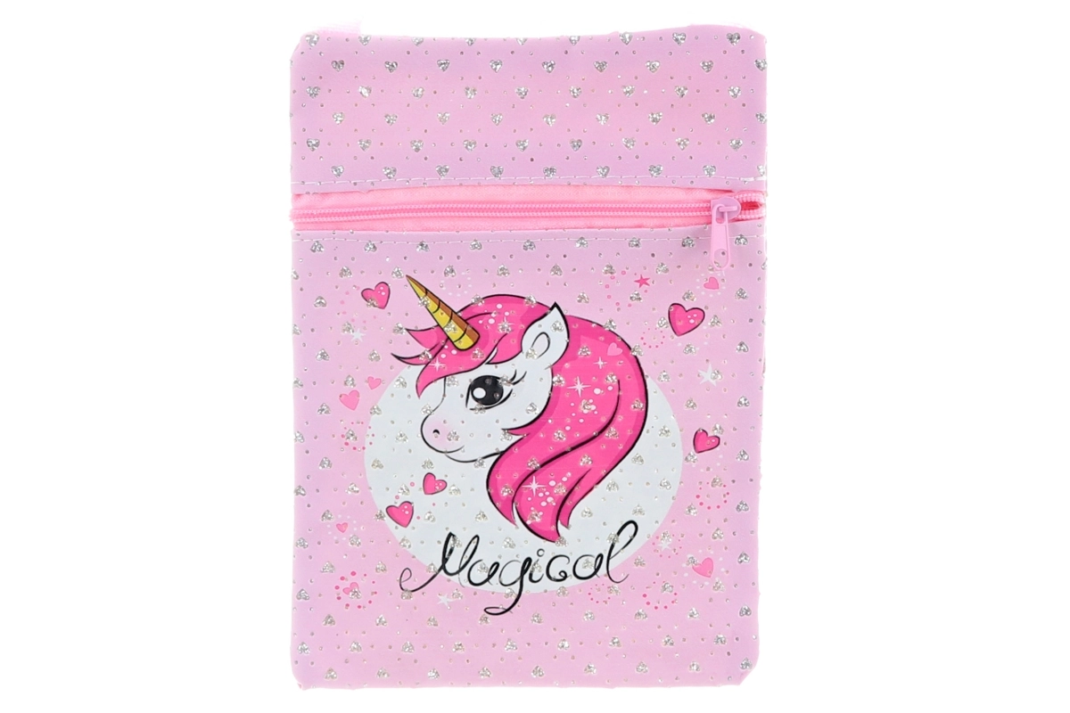 Ta elegantna torbica za čez ramo s čarobnim motivom samoroga je popolna za vsakodnevno nošenje. Zaradi kompaktnih mer vanjo udobno spravite telefon, ključe in denarnico, zadrga pa poskrbi za varno shranjevanje vseh malenkosti.