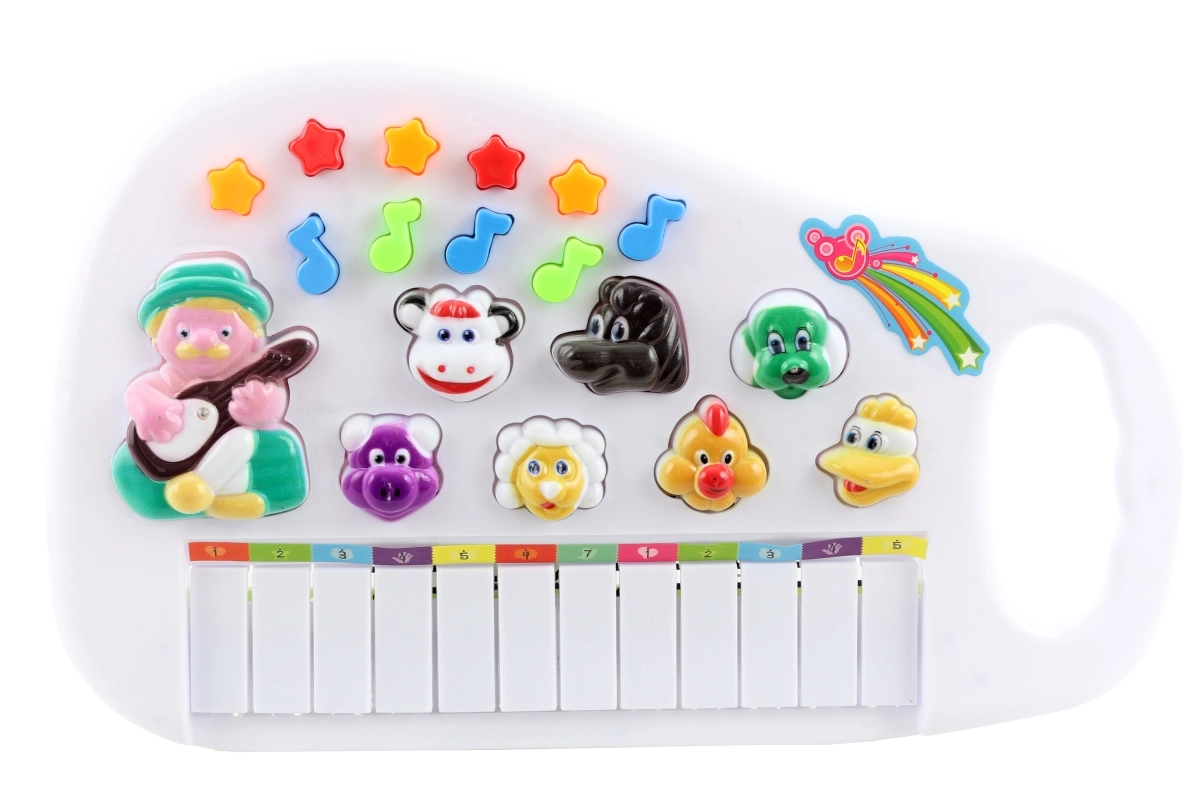 Odkrijte svet glasbe z zabavnim otroškim klavirčkom z zvoki živali. Zahvaljujoč 12 tipkam otroci zlahka zaigrajo prve melodije, medtem ko 7 gumbov z živalskimi zvoki prinaša igrive učinke, ki spodbujajo domišljijo. Dodatnih 10 tonskih gumbov razširja možnosti igre in naravno razvija glasbeni čut.