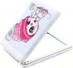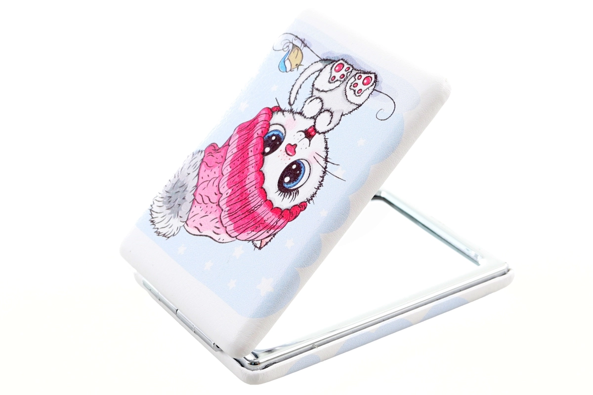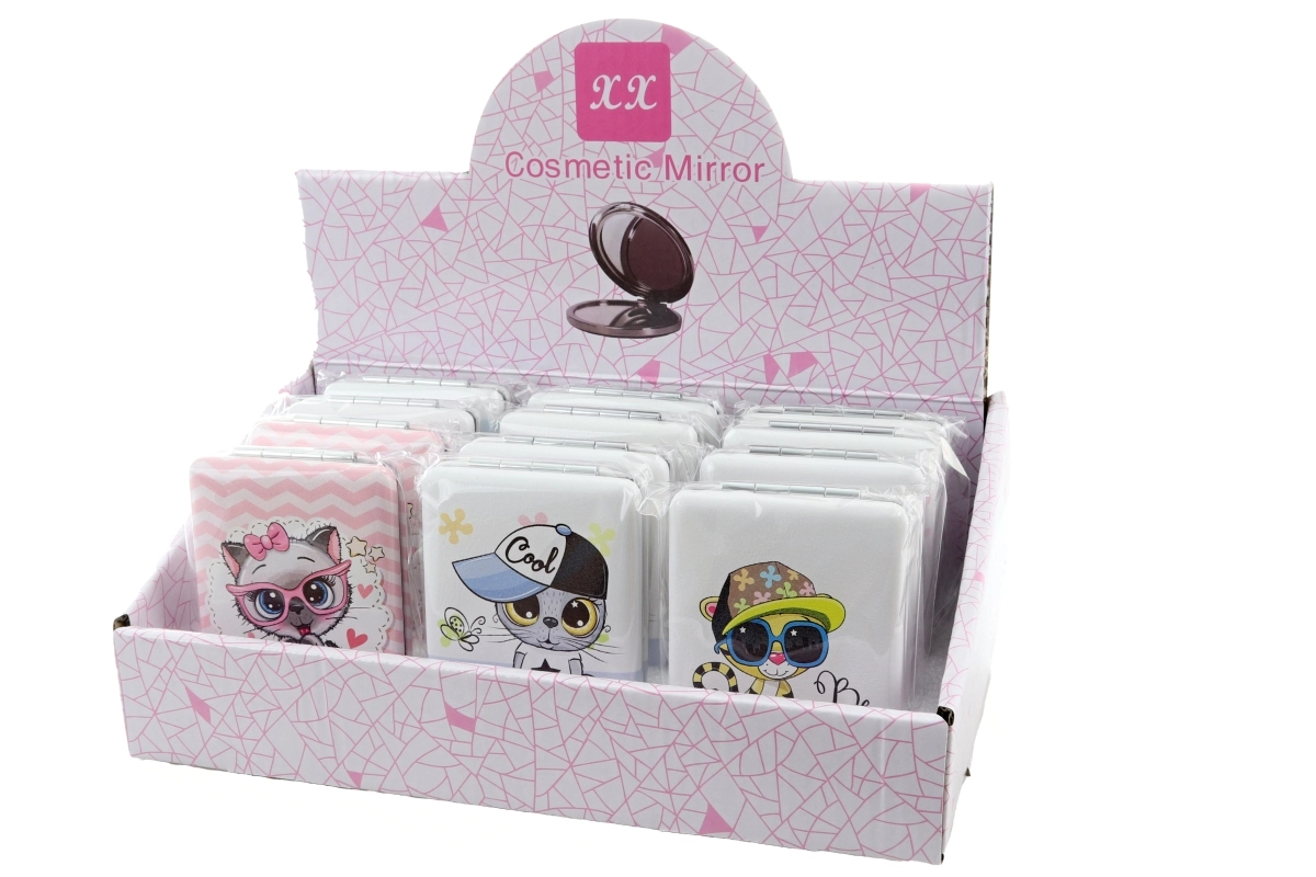 Stilsko žepno ogledalce z živalskimi motivi navduši z veselimi potiski in praktičnostjo. Po odprtju najdete dvojno ogledalce, ki olajša hitro preverjanje ličil ali urejenosti kjerkoli na poti.