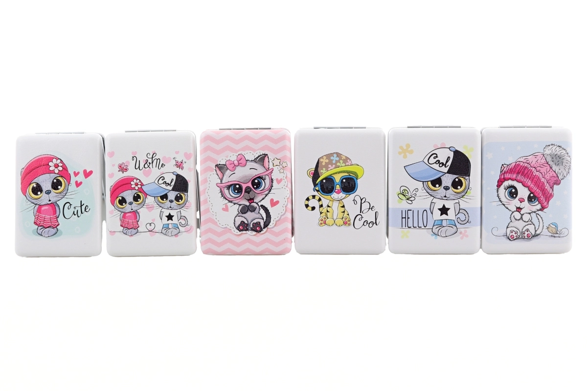 Zaradi kompaktnih mer 6 × 8,5 × 1,5 cm se zlahka prilega v torbico, pisemsko torbico ali šolski nahrbtnik. Vsak kos je pakiran v vrečki, motivi se lahko razlikujejo – dobavljamo glede na trenutno razpoložljivost. Izdelek ni namenjen kot igrača.
