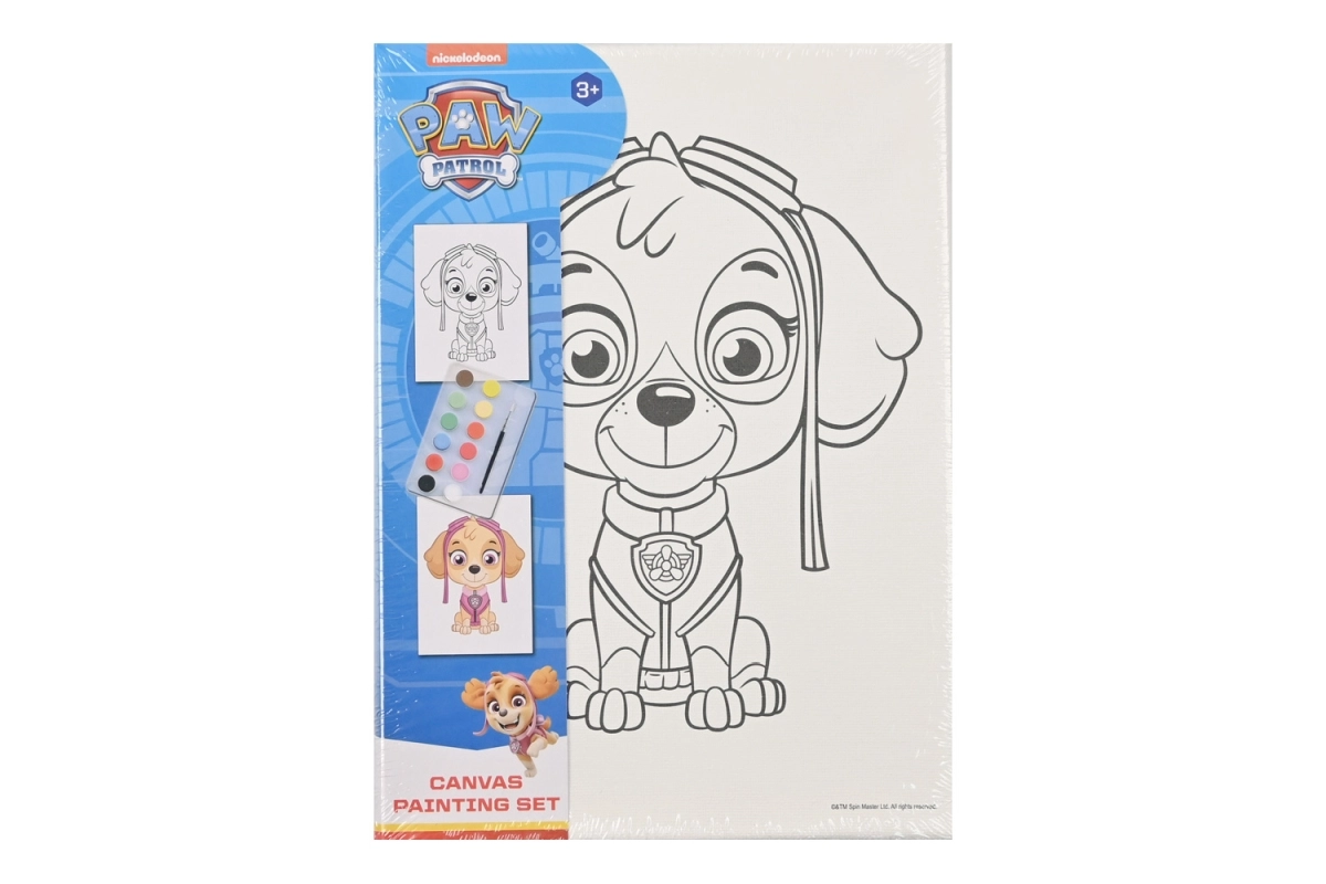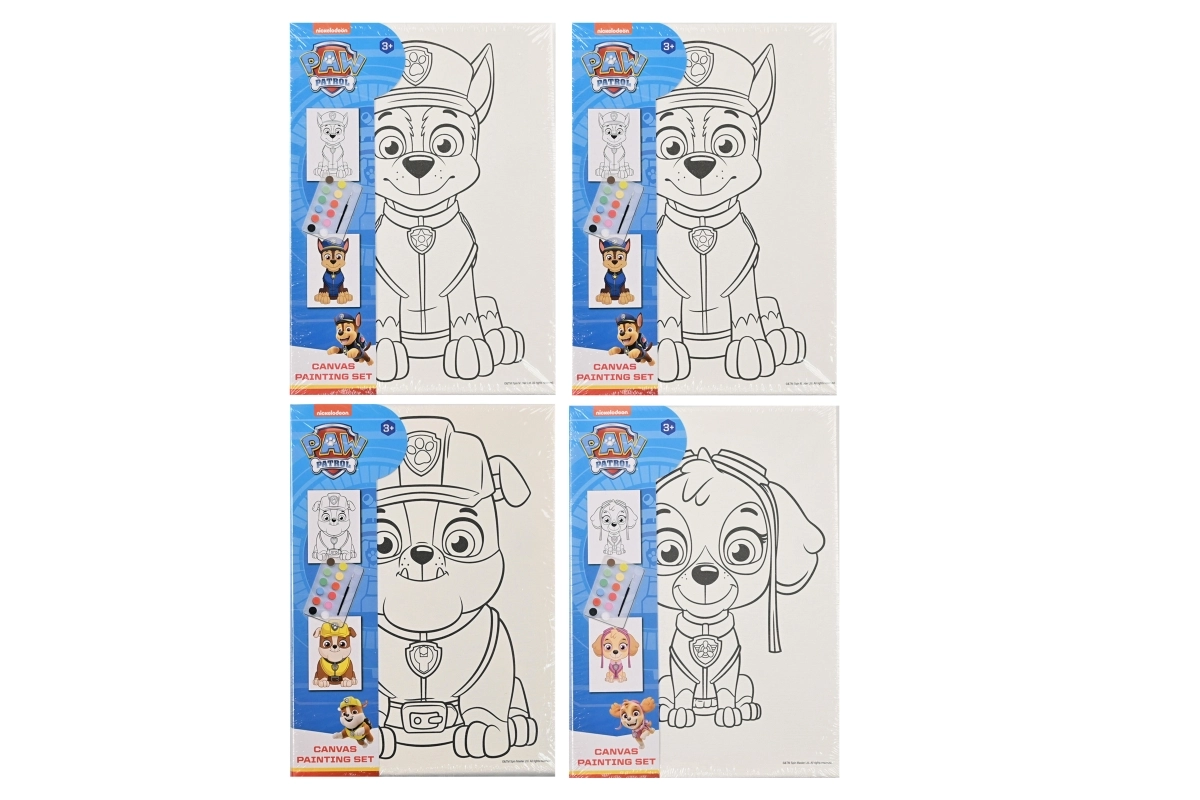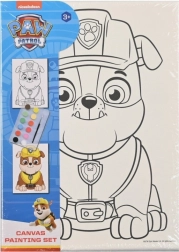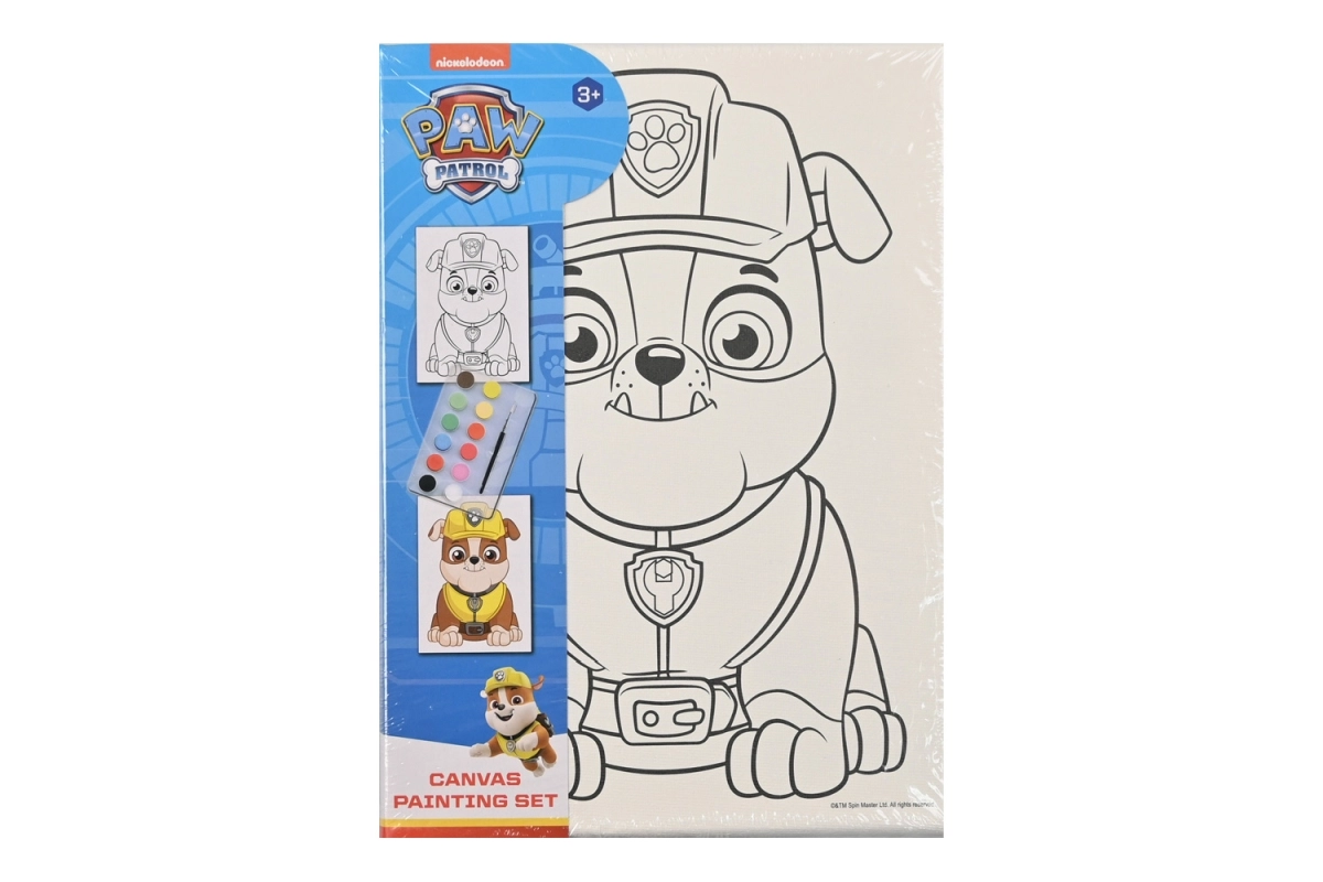 Ustvarjalni set za male umetnike z motivi TAČKE NA PATRULJI prinaša zabavno slikanje na platno. Vsebuje platno, vodene barve z 12 odtenki in čopič. Velikost platna 18 × 25 × 1,5 cm. Različni motivi glede na razpoložljivost na zalogi. Primerno za otroke od 3 let.
