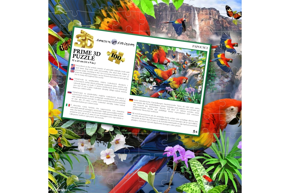 Uživajte v ustvarjalnem sestavljanju s čudovitim motivom eksotičnih papig. Ta 3D sestavljanka je odlična izbira za skupne trenutke z otroki ali kot samostojna aktivnost, ki spodbuja zbranost in logično razmišljanje. Zaradi kakovostne izdelave se koščki dobro povezujejo, končna slika pa izstopa z živimi barvami.