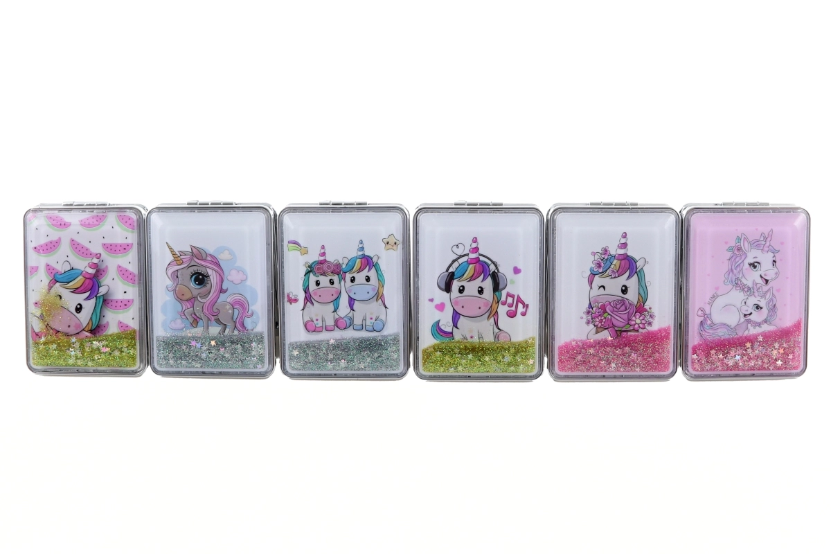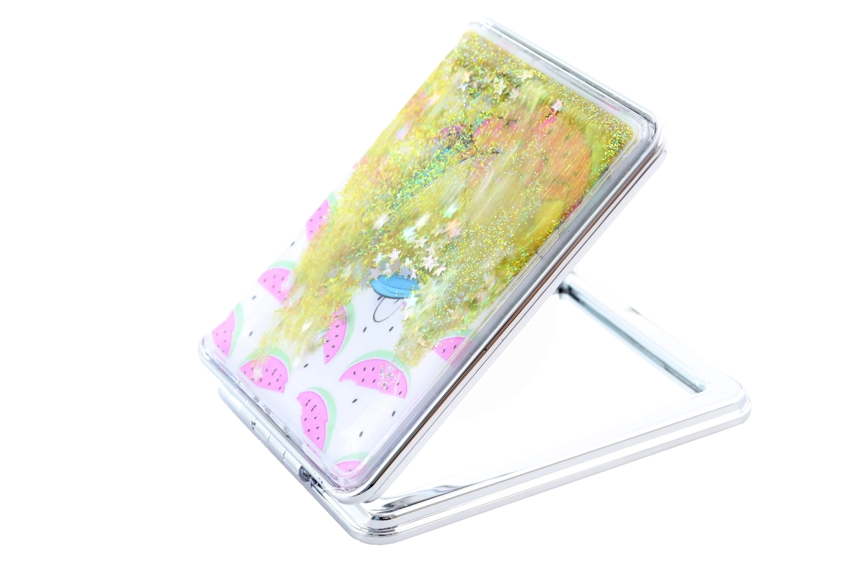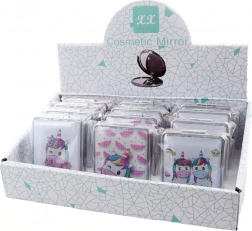 Privoščite si ljubek in praktičen dodatek za v torbico. Kvadratasto žepno ogledalce z motivom samorogov navduši z premikajočimi se bleščicami na sprednji strani in po odprtju ponudi dve ogledalni ploskvi. Idealno za hitre popravke ličil na poti.