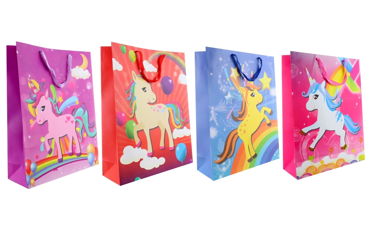 Iščete impresivno embalažo za izjemno darilo? Ta ogromna darilna vrečka s čarobnim motivom samoroga očara na prvi pogled. Trpežen papir in praktična oblika omogočata udobno pakiranje tudi bolj zajetnih predmetov.