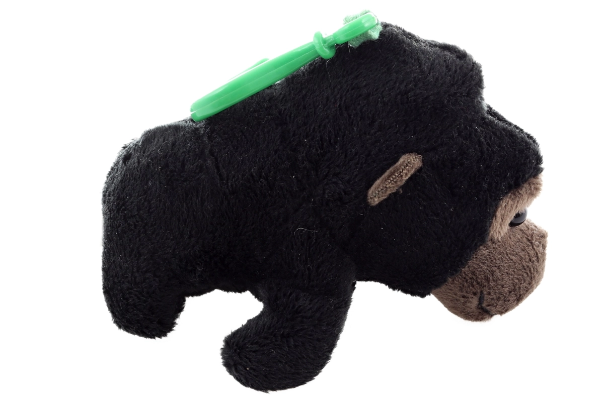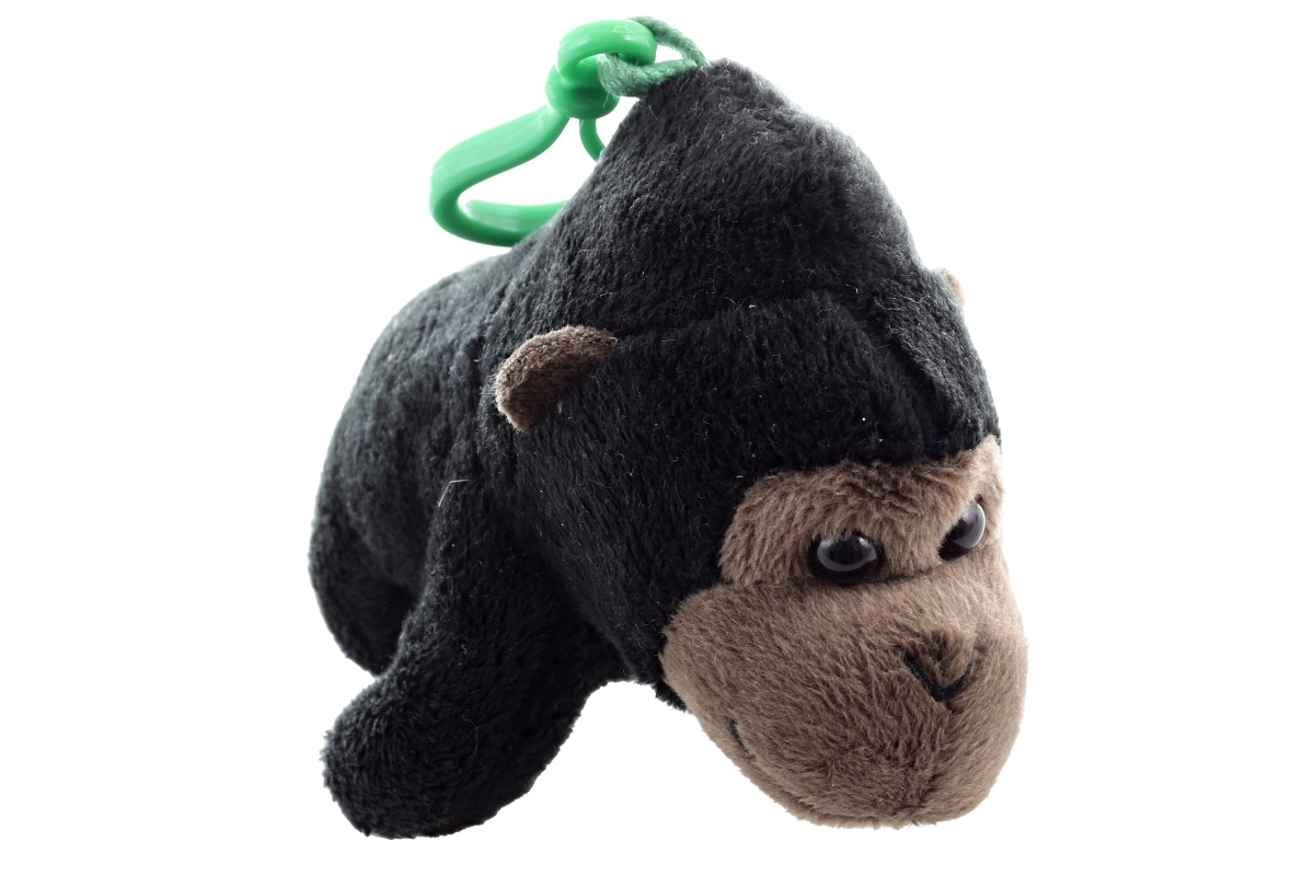 Ta trendovska plišasta gorila je odličen dodatek za vsakodnevno nošenje. Nežna črna dlaka z rjavim obrazom in izrazitimi plastičnimi očmi deluje simpatično in vabi k božanju. Zeleni sponko omogoča hitro in zanesljivo pripenjanje na ključe, torbo ali zadrgo nahrbtnika.