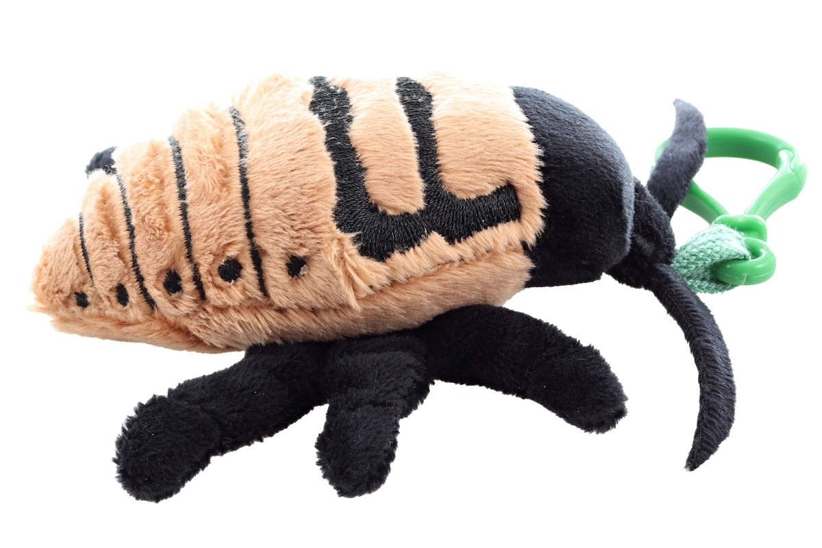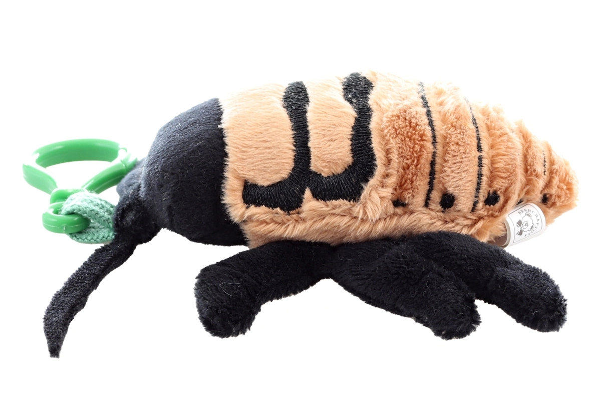 Ta mini plišasti sikajoči ščurek združuje prikupen dizajn s praktično uporabo. Zahvaljujoč mehkem plišu je prijeten na dotik, medtem ko trdna plastična sponka omogoča hitro pripenjanje kamor koli – na zadrgo, torbo ali ključe. Nežne vezenine in več nožic dajejo igrački realističen in igriv videz.