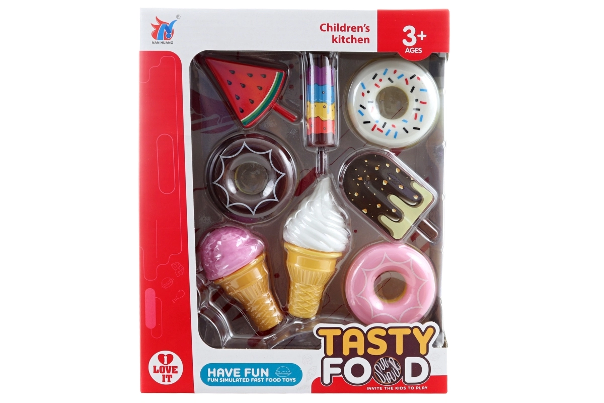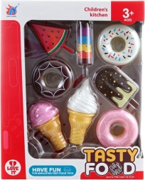 Ta set sladkarij je idealen za otroške kuhinjice, igralnice in igro trgovinice. Zaradi lahkega in čvrstega plastika si lahko otroci varno razvijajo domišljijo, fino motoriko in socialne veščine pri skupni igri.