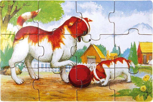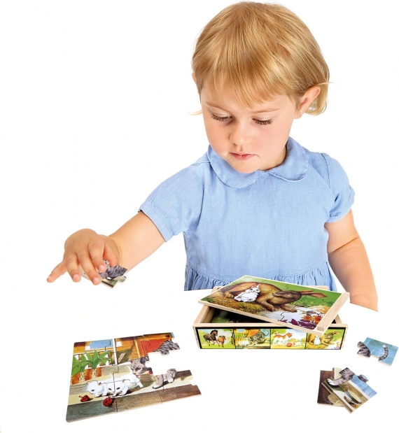 Odkrijte čar tradicionalnih lesenih sestavljank, ki predstavljajo motive, kot so mačka, pes, konji in zajci. Komplet vsebuje 48 kosov, ki so zapakirani v praktični škatli s pokrovom, kar olajša njihovo shranjevanje in prenašanje.