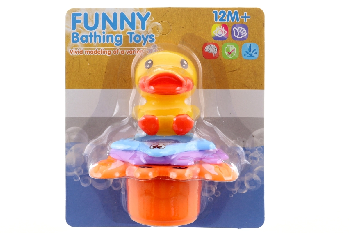 Ta prikupna vodna igrača združuje zložljive lončke in plavajočo račko, da je vsako kopanje polno smeha in odkrivanja. Otroci lahko lončke zlagajo, zajemajo vodo in opazujejo, kako odteka, medtem ko račka plava na gladini.
