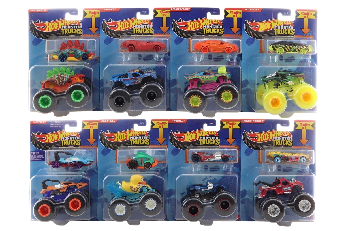 Odkrijte svet mogočne zabave z Hot Wheels Monster Trucks v merilu 1:64. Vsak tovornjak je iz masivne kovine, ima izrazit dizajn in je pripravljen na trke, skoke in silovite udarce. Del pakiranja je tudi sloviti Hot Wheels avtomobilček 1:64 za še več igralnih kombinacij.
