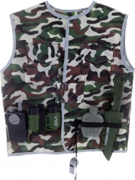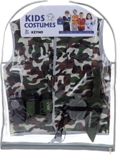Otroški vojaški kostum je odlična izbira za pustne dni, karnevale in vsakodnevno pustolovsko igro. Udoben telovnik in komplet taktičnih dodatkov spodbujata domišljijo in razvoj iger vlog. Varno mehko rezilo noža in lahki materiali zagotavljajo brezskrbno zabavo.