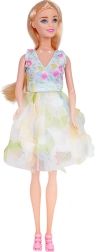 - 5× manekenka, punčka, škarje, svinčnik/barvica, lepilni trak, 3× nit, aplikacije za tkanino, barviti trakovi, 4× vrečka s tkanino in kartonskim krojem, vrečka z bleščečo tkanino, igle (plastične in kovinske)