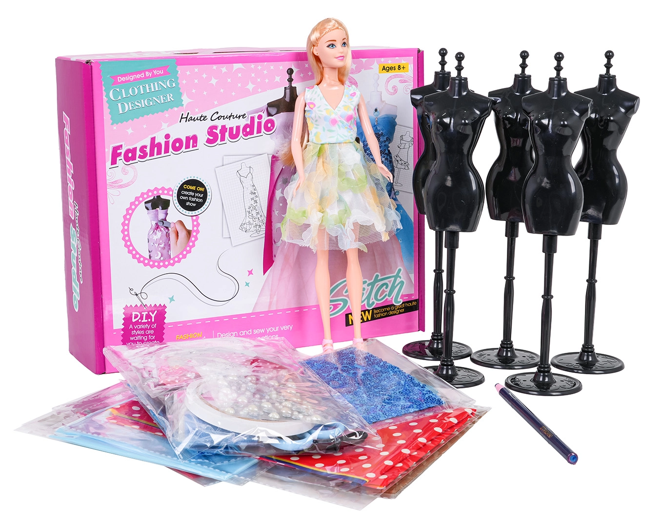 Ta celovit set za začetnice v modnem oblikovanju otrokom omogoča, da zasnujejo, preizkusijo in ustvarijo lastno kolekcijo oblek za punčke. Zahvaljujoč manekenkam, pripravljenim krojem in raznolikim materialom je proces zabaven in hkrati poučen. Rezultat so izvirni modeli, ki jih lahko razstavite ali še naprej prilagajate.