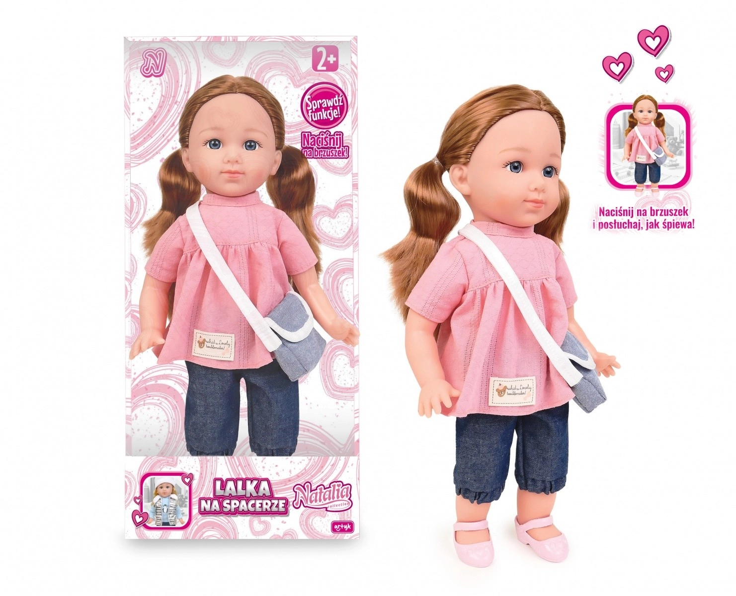 Punčka Natalia v rožnati tuniki in modnih hlačah ponuja otrokom veliko zabave in učenja. Ob pritisku na trebušček izreče poljske fraze in zapoje dve pesmici, kar podpira slušno zaznavanje in naravno posnemanje odraslih. Kakovostna izdelava, nežne poteze obraza in gibljive okončine jo naredijo za odlično prijateljico vsak dan.