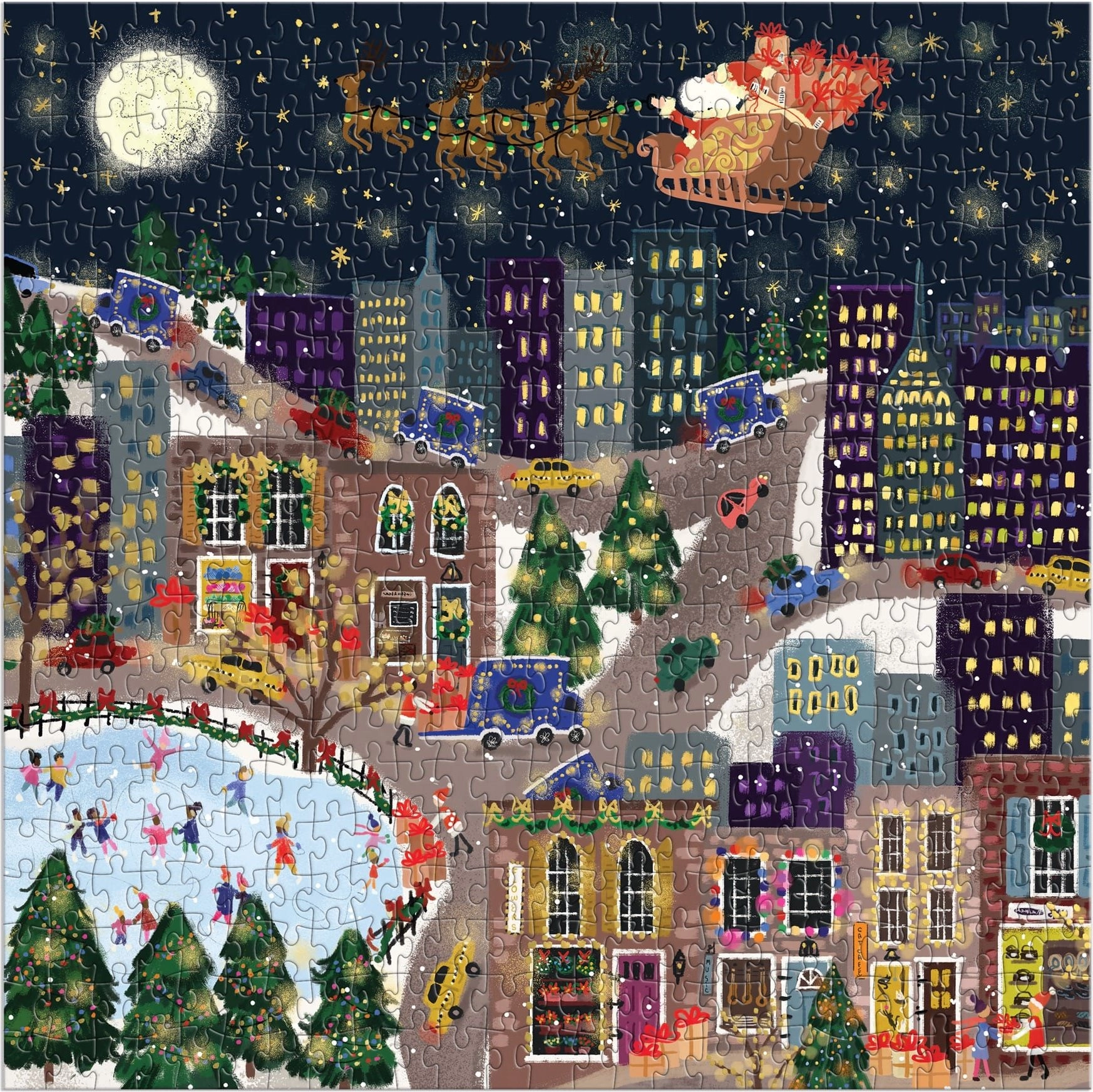 Kovinski kvadratni puzzle GALISON z motivom Darilnega mesteca združujejo kakovosten tisk, natančno izrezane koščke in privlačen lesk. Kvadratni format se odlično poda na steno ali polico ter razveseli začetnike in izkušene sestavljavce.