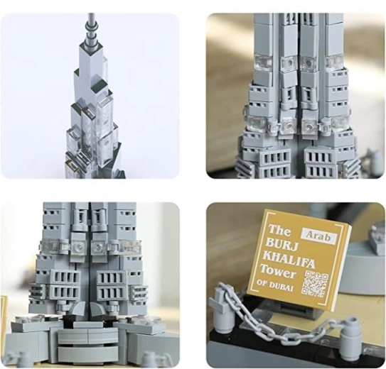 Odkrijte ikonični dubajski stolp s tem gradbenim setom Burj Khalifa s 555 koščki. Visoka kakovost izdelave, čvrsta konstrukcija in dovršeni detajli bodo razveselili mlade graditelje od 6 let naprej. Odlična ideja za darilo za ljubitelje arhitekture in sestavljank.
