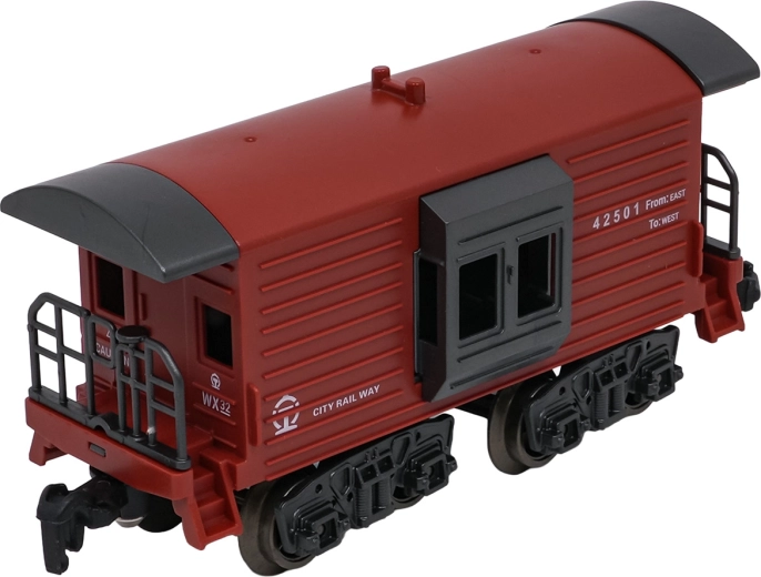 V kompletu so lokomotiva, tender z ogljem, dva zelena potniška vagona in rdeč tovorni vagon. Vsak del ima funkcionalne spenjače in realistične podrobnosti za privlačno igro.