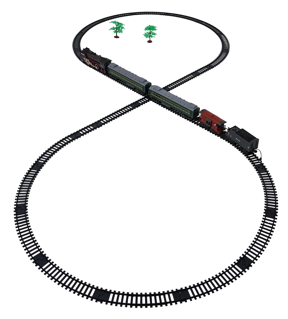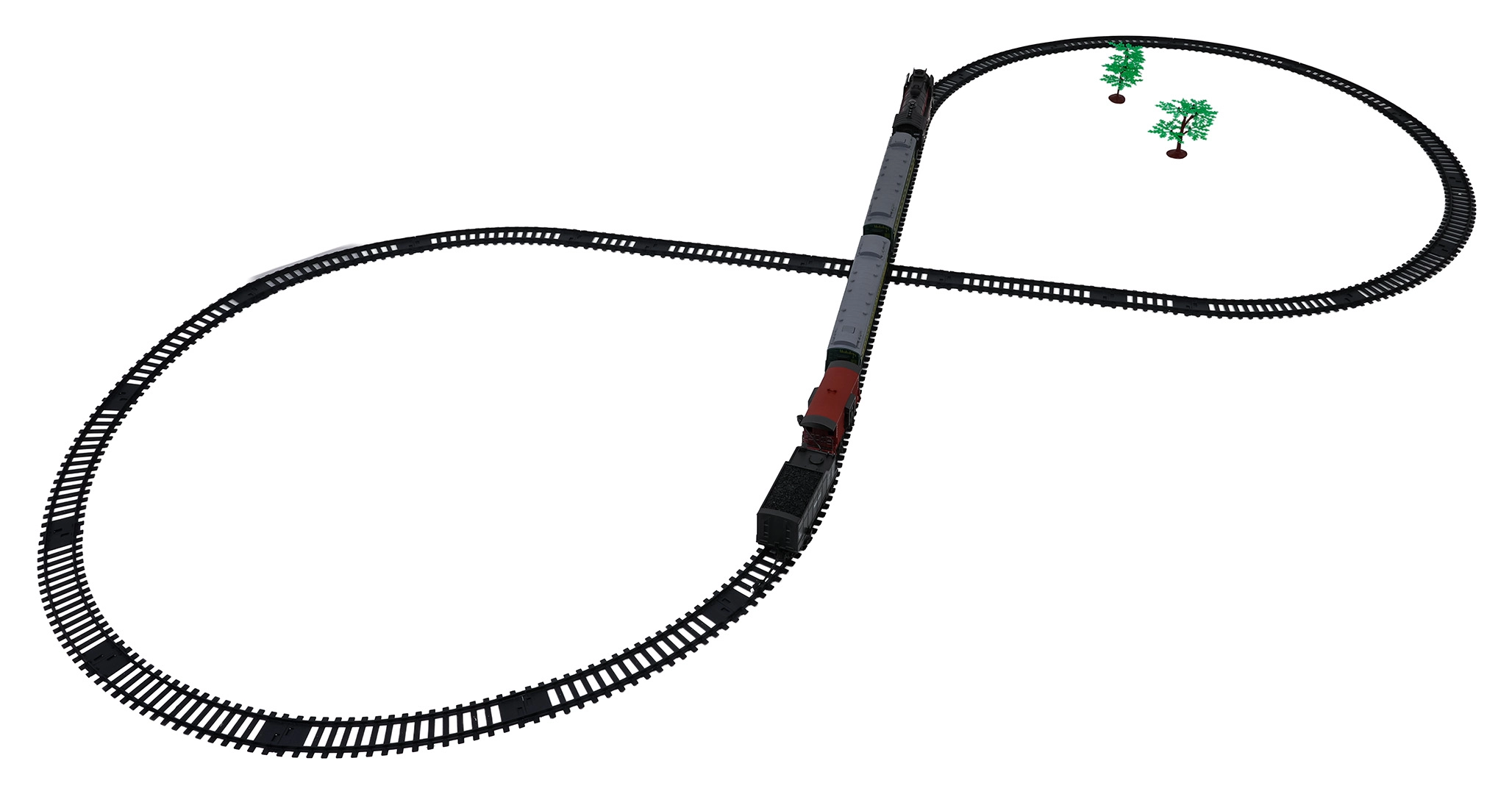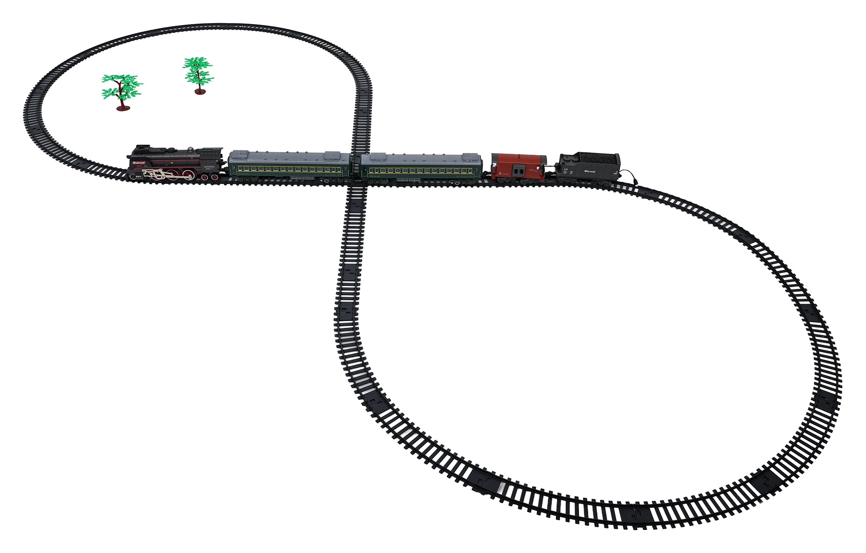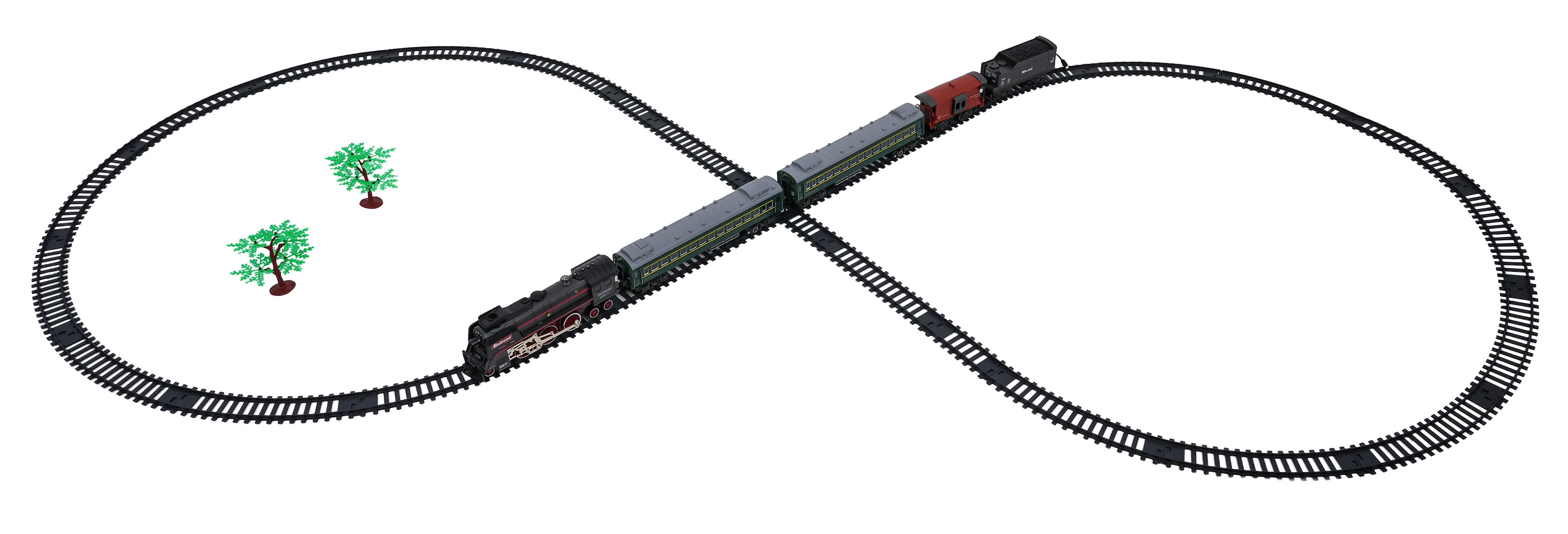 Čvrste plastične tirnice se preprosto zaskočijo v razširjen osmičast krog. Dolga proga ponuja gladko vožnjo in veliko zabave.