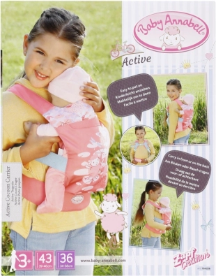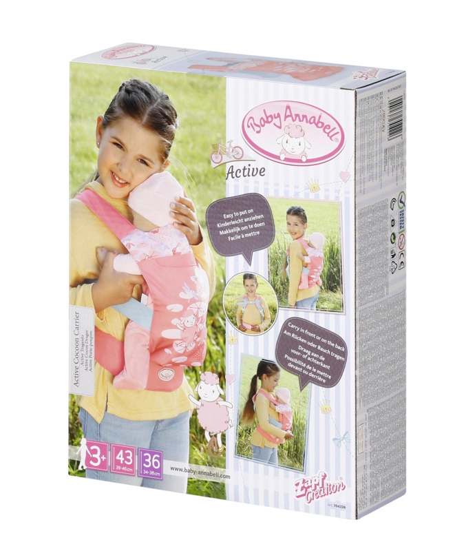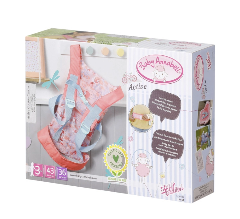Praktična nosilka za punčke BABY ANNABELL je odlična za male skrbnike, ki želijo imeti svojo punčko vedno pri sebi. Z možnostjo nošenja spredaj in na hrbtu ter dvema sprednjima sedečima položajema (obrnjeno naprej ali proti otroku) bodo otroci uživali v udobni in varni igri na vsakem izletu.