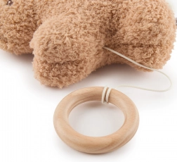Nežna površina vabi k crkljanju, gladek leseni obroček pa dobro sede v otroške ročice in omogoča udoben poteg.