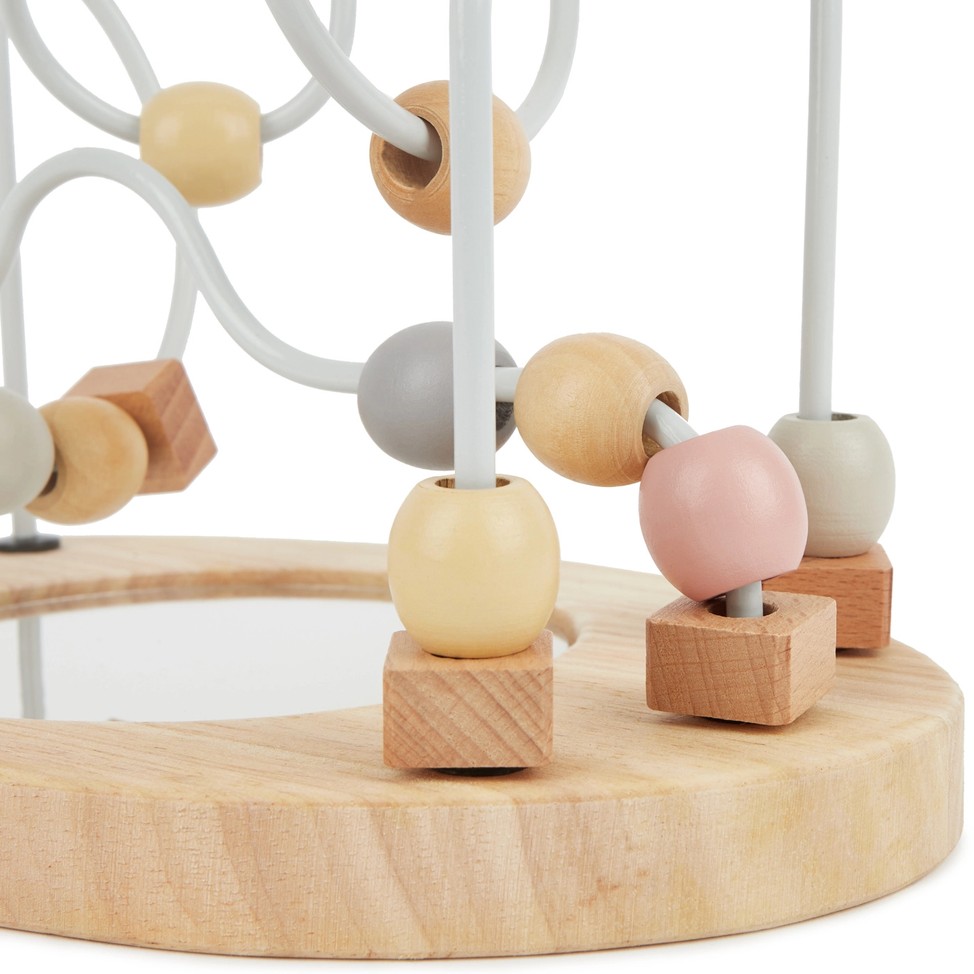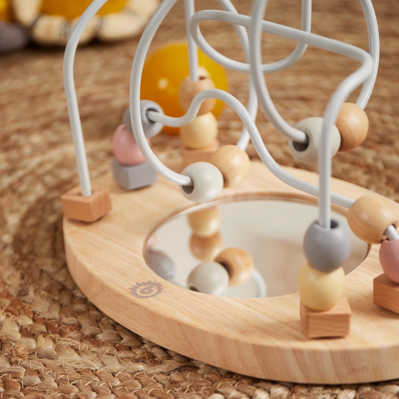 Ta stilski motorični labirint v rožnatih tonih je idealna igrača za prve veščine. Z drsenjem kroglic po žičnih poteh otroci urijo prijem, potrpežljivost in prostorsko zaznavanje. Ogledalce na sredini pritegne pozornost ter podpira samospoznavanje in senzorično zaznavanje.
