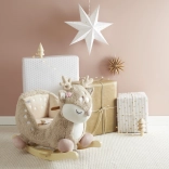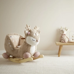 Prisrčen gugalni jelenček Ella znamke Bieco razveseli otroke že od 9 mesecev dalje. Ima mehak plišast površinski material, mehko oblazinjen sedež z varnostnim pasom in stabilno leseno konstrukcijo z stupničkami in ročaji. Spodbuja motoriko, ravnotežje in naravno gibanje, hkrati pa je varen zaradi zaščite pred prevrnitvijo in nizke višine sedenja.