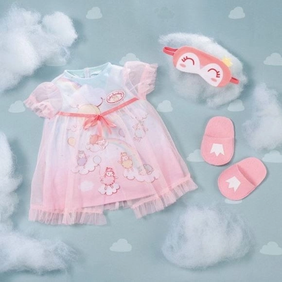 S to spalno srajco se Baby Annabell počuti kot na oblaku. Zahvaljujoč tylovemu zgornjemu krilu in veselimi vzorci ovc, vaša lutka rada vsak večer zaspi. Nočni ritual spremlja tudi ljubka maska za spanje in copati, ki jih je enostavno sleči.<"/p>