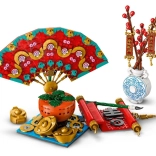 Praznujte Praznik pomladi z elegantno dekoracijo LEGO. Sestavite simbole sreče, zdravja in blaginje, vključno z vrtljivim pahljačastim okrasom z dvema srakama, vazo z rdečimi plodovi, kakijem, zlatimi ingoti in kaligrafskim peresom s svitkom z znakom za »pomlad«. Idealna družinska zabava in odlično darilo za otroke od 9 let.