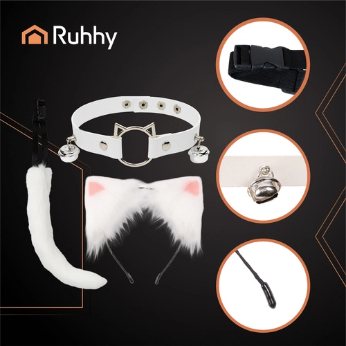 Izrazite svoje razpoloženje in slog – z belim setom RUHHY se v trenutku spremenite v skrivnostno mačko, očarljivo lisico ali divjega volka. Mehki detajli iz umetnega kožuha delujejo efekno, lahka konstrukcija pa zagotavlja udobje skozi cel večer. Zahvaljujoč oblikovalni žički v repu lahko njegovo krivino preprosto nastavite po svojih željah.