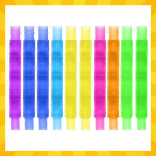 Set 10 senzoričnih cevk ponuja igrivo stimulacijo za otroke in odrasle. Zaradi različnega upora pri raztezanju zagotavljajo bogate senzorične dražljaje, podpirajo koordinacijo oko–roka in zbranost. Pri uporabi oddajajo pomirjujoče pop zvoke, ki pomagajo k umiritvi in koncentraciji.