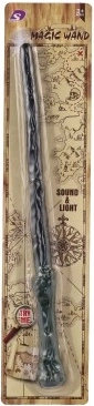 Čarovniška paličica za male čarovnike s svetlobnimi in zvočnimi učinki. Idealen dodatek h kostumu, dolžina 36 cm, trpežna plastika. Baterije 3× AG13 so priložene, primerno od 3 let.