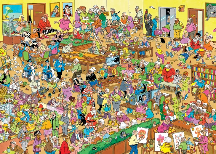 Odkrijte šalo za šalo v izvirni ilustraciji »Dom za upokojence« avtorja Jan van Haasteren, ustvarjeni ekskluzivno za znamko JUMBO. Značilen slog, poln humorja, množice likov in nepričakovanih situacij, vas bo povsem prevzel.
